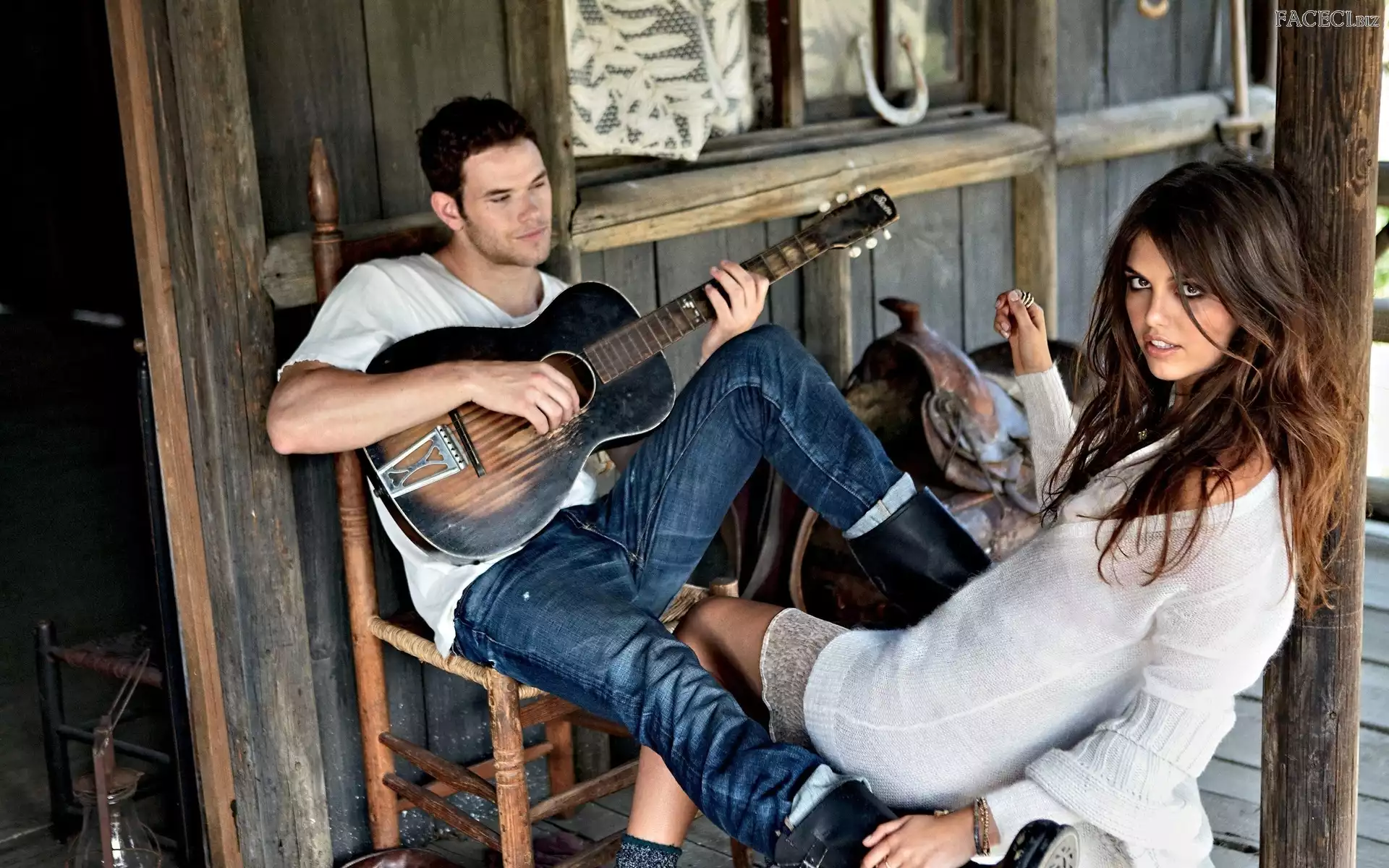 Mężczyzna, Taras, Kobieta, Gitara - faceci.biz